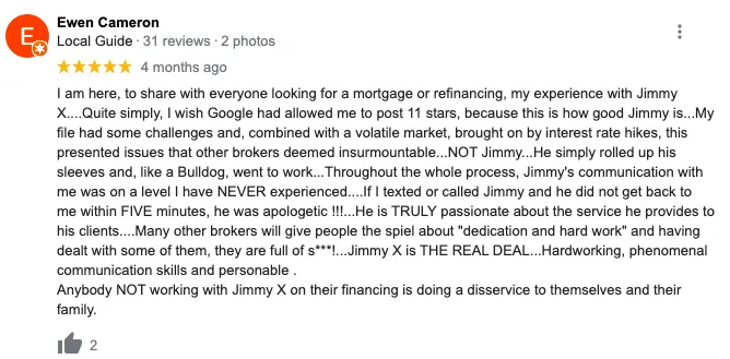 My name is Jimmy, and I am an award-winning mortgage broker in the top 20% of my field, helping clients across Ontario. I’m here to assist you and earn your business!